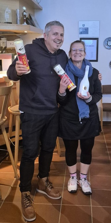Nachdem die Siegerehrung fast abgeschlossen war, wurden nochmals die beste Spielerin und der beste Spieler geehrt. In diesem Jahr war es bei den Damen – letztes Jahr ist sie knapp daran vorbei gerutscht – Nadine Piepenhagen und bei den Herren Gerd Körting. Beiden wurde dieser Ehrenpreis mehr oder weniger überrascht überreicht.